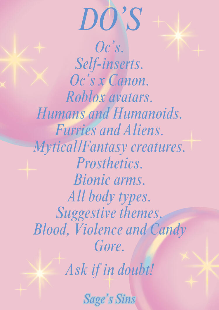 In doubt about something, please contact me directly through any of my socials! I'll me more than happy to clear stuff up for you ♡